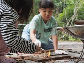 ファイヤースターターを使って火をおこすところまでは子ども達も上手に出来るようになりました