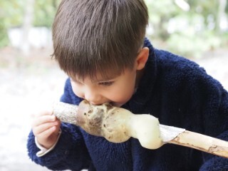 最後は火おこし名人のモジャが見本を見せて、つけた火を使ってねじりパンを焼いて食べました