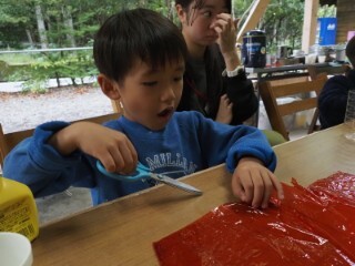 ペットボトルにカラーセロハンをペタペタ貼り付けて、ランタンを作りました。