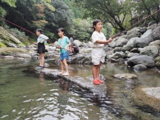 午後、小学生は釣りに挑戦、最終的な釣果は六匹もあり見事でした