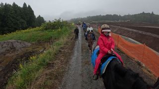 スタッフの人にフォローしてもらいながらお馬さんに乗り込みます。
