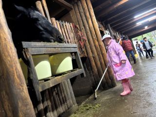 乗馬の合間にはボロ(馬の糞)の掃除も一生懸命進めてくれました!