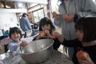 幼児さんは玉ねぎの皮を剥いたりしてくれました。