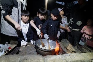 男の子の小学生は火起こしを頑張ってくれましたね。