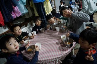 あいにくの雨の中でのキャンプになりましたがこども達は元気いっぱい。