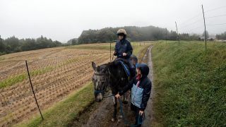 乗馬の合間にはボロ(馬の糞)の掃除も一生懸命進めてくれました!