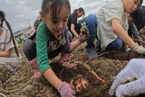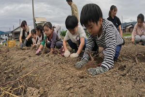 今日のメインプログラムはサツマイモ堀り。