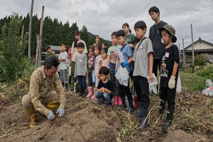 まずはサツマイモの掘り方をよく聞いて。