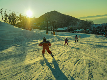 お昼を挟み日が暮れつつある16時頃までたっぷりスキーを楽しみました