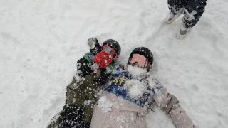 昨晩から雪が降り続き、寝転びたくなるようなフカフカの雪です。