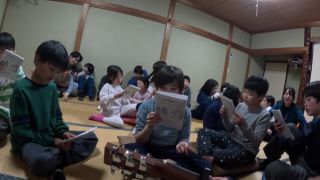 入浴と夕食を済ませたら食堂でキャンプソング大会です。