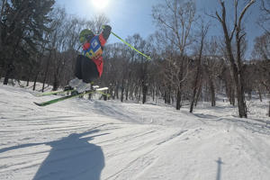 地形遊びが楽しい札幌テイネスキー場では、自然のジャンプ台がいたるところに。
