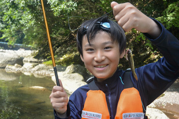 小さなハヤやハゼを釣り上げて大喜び。釣れていない子も「明日もやりたい!」としっかりハマったようです。