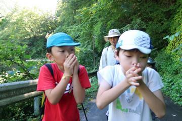 途中、昆虫やサワガニなどを見つけながら、雨乞いの滝に到着です!