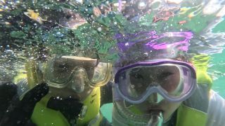 シュノーケリングが苦手なメンバーは水中のぞきバケツを使ってお魚を見て楽しみます。