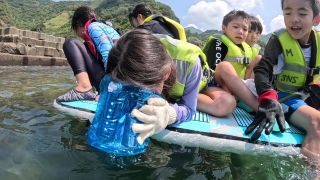 ボディーボードに乗ったり、リーダーから投げてもらいとまずは海でたくさん遊びます。