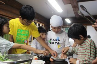 途中で里芋や空芯菜炒めなどをおやつとしてつまみながらスムーズに調理を進めていきます。