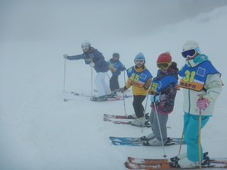 午後はスキー検定と張り切ってリフトに乗ると、あたり一面霧の中。