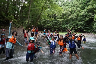 子どもたちもリーダーも水の冷たさを諸ともせずにひたすら水を掛け合い続けます。