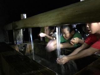 夜の海辺まで行き、また違った海の風景を楽しみ、神津島で有名な湧水を飲みに行きました。