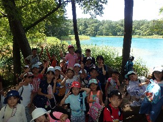 案内看板に載っている写真に、いまいちピンとこない子どもたちも実際の鮮やかな五色沼の色をみるとたちまち驚きの声を上げていました。
