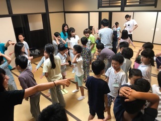 夕食後夜のプログラムは最初ギターに合わせてキャンプソングを元気よく歌いました。