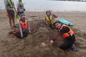 水鉄砲で遊んだり、ジュニアリーダーをミイラのように砂に埋めたり、