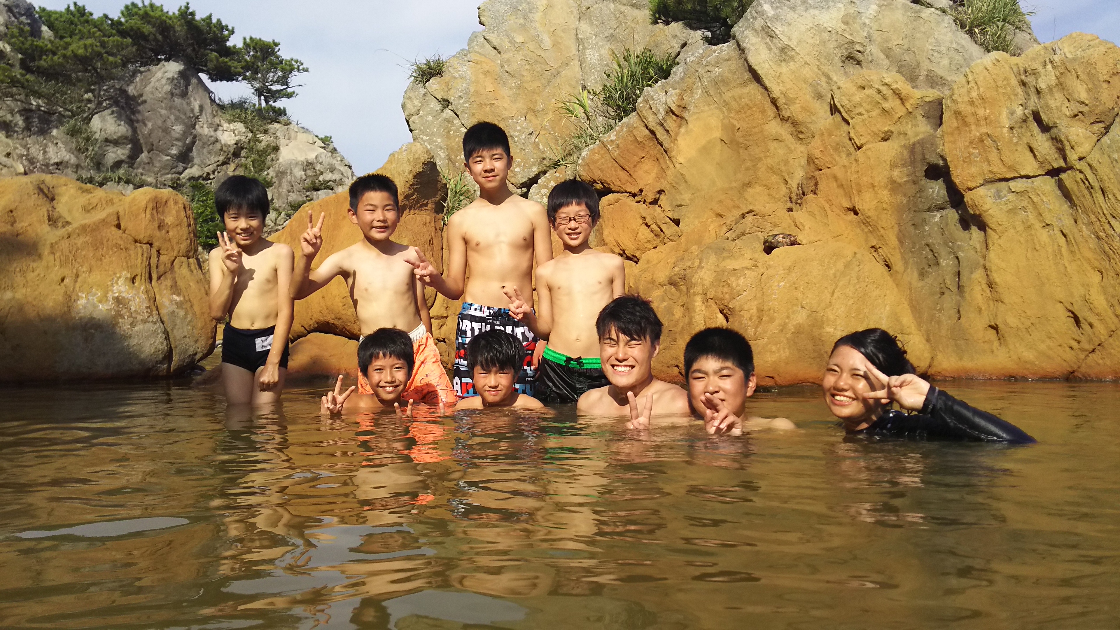 刺身丼の昼食を食べて午後はスノーケリングの練習をして、沖の方までツアーに出かけたり、岩から飛び込班もありました。