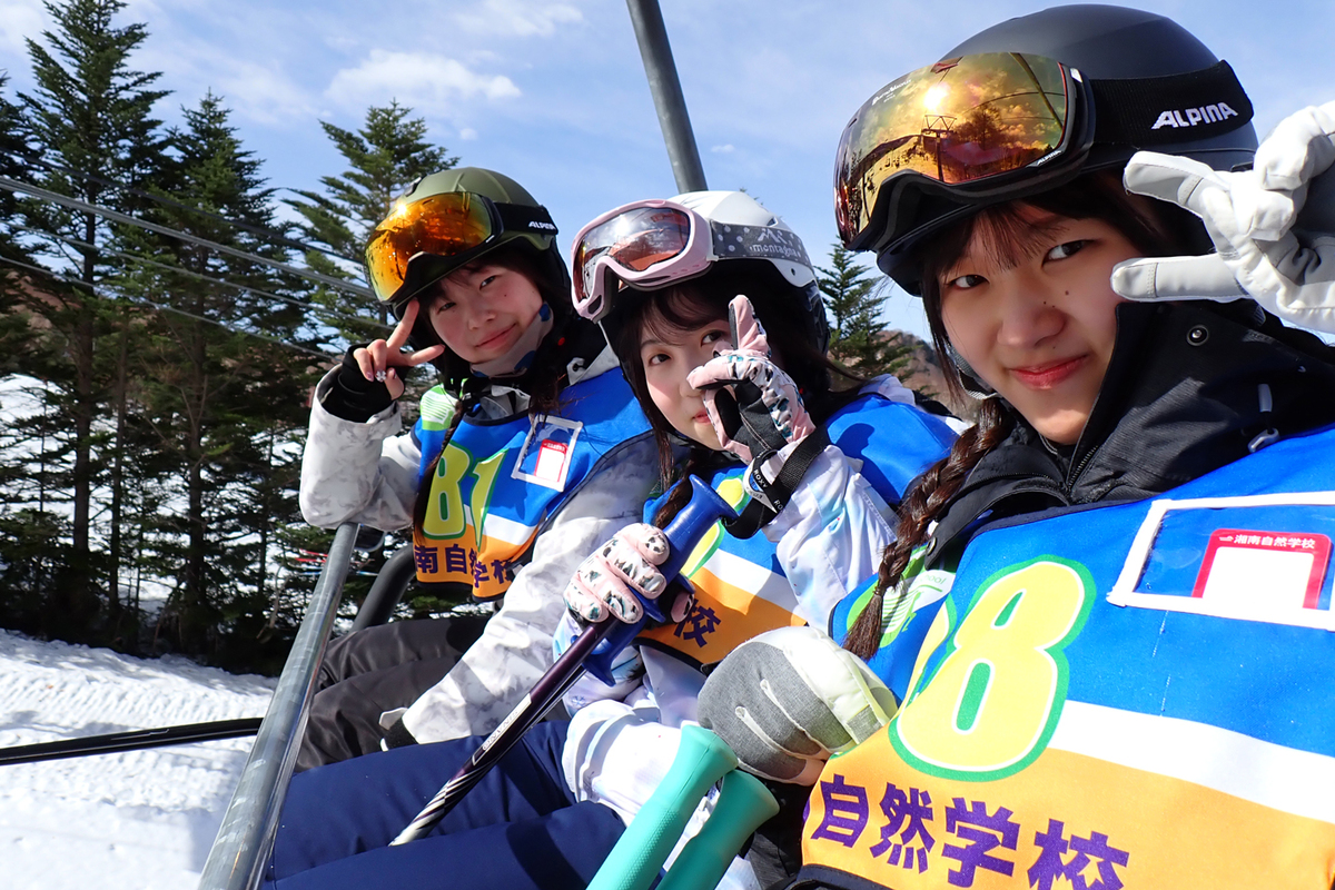 スキーレッスン、湘南自然学校オリジナルスキー検定、雪遊び、キャンドルファイヤー、など。