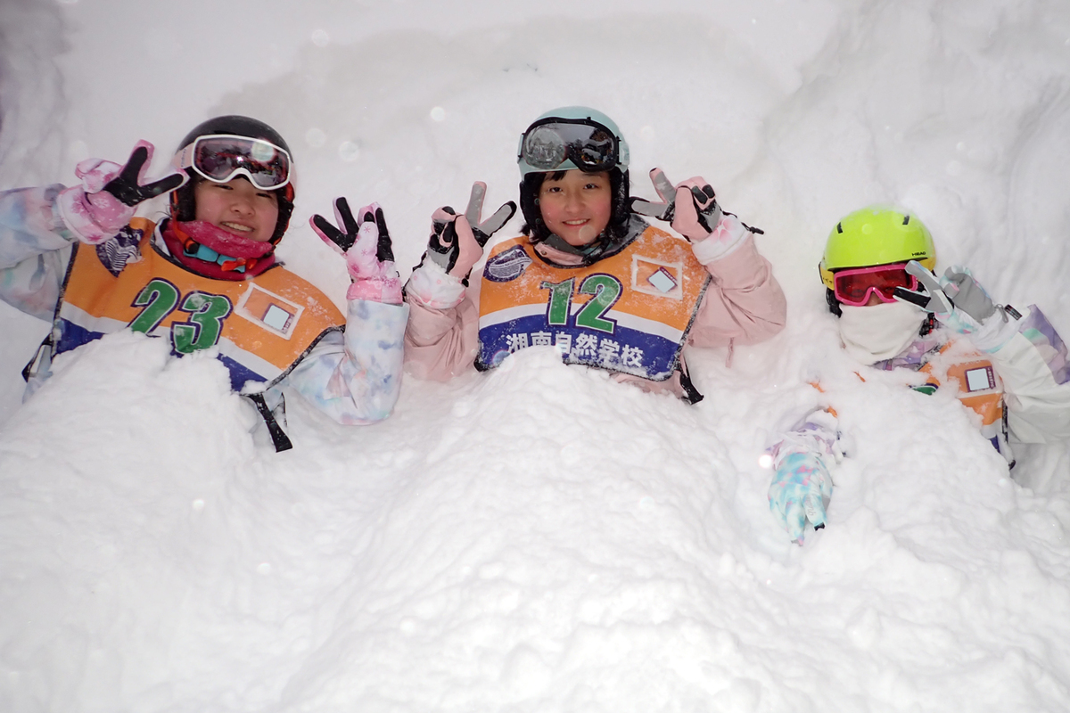 スキーレッスン、湘南自然学校オリジナルスキー検定、雪遊び、キャンドルファイヤー、など。